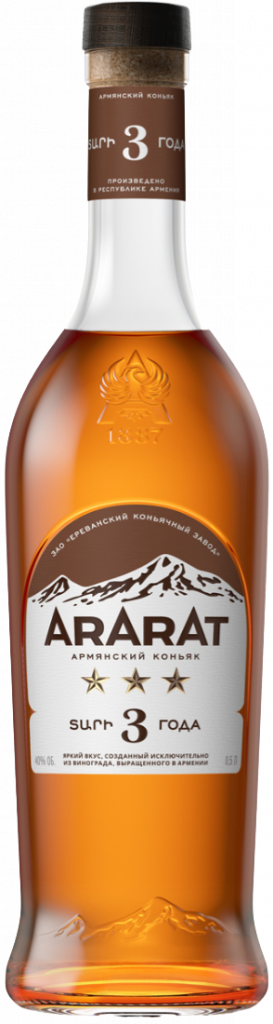 Армянский коньяк Арарат трехлетней выдержки имеет яркий и насыщенный вкус. Тонкая сладость в начале сменяется небольшой сухостью в конце. Коньяк рекомендуется подавать в температурном режиме 16-18 градусов Цельсия.